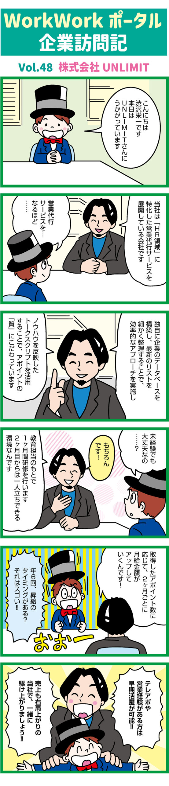 \入社2ヶ月目で月給10万円UPも!早期成長のチャンス、掴めます。/ 「HR領域」に特化した営業代行サービスを展開している当社。成果をしっかり社員に還元できる体制があるため、どんどん収入・キャリアを上げていけます! ┈┈┈┈┈┈┈┈┈┈┈┈┈┈┈┈┈┈┈┈┈ ◇◆1年目で【年収約750万円】も可能!◆◇ 取得アポイント数に応じて、2ヶ月ごとに月給がアップ。「入社2ヶ月で月給10万円アップ」「2024年入社・新卒1年目で年収約750万円」という先輩もいます。 ゆくゆくは、会社運営、新規事業に携わるキャリアや、独立という道も。あなたも、当社で駆け上がりませんか? ┈┈┈┈┈┈┈┈┈┈┈┈┈┈┈┈┈┈┈┈┈ |
