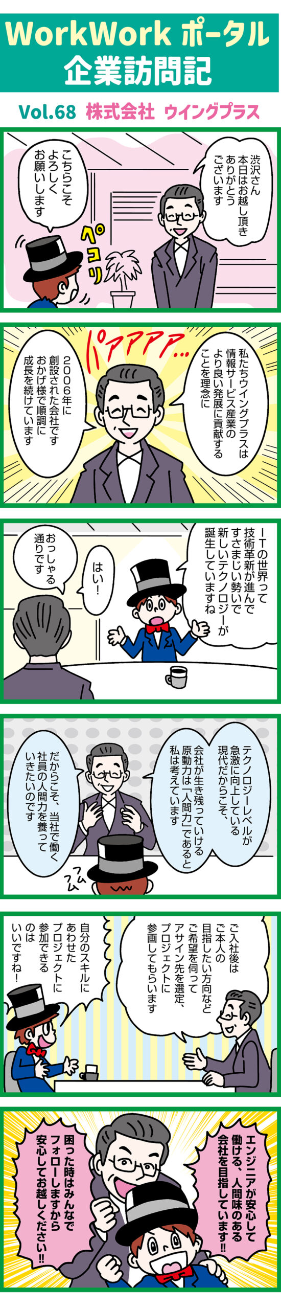 | \案件選択可能。あなたがなりたいエンジニアを目指せます!/ ウイングプラスは、情報サービス産業のよりよい発展に貢献することを理念に、2006年に創設された会社です。 ┈┈┈┈┈┈┈┈┈┈┈┈┈┈┈┈┈┈┈┈┈ 【当社で働く3つの魅力】 01:やりたいことが実現できる 当社は役員と社員との距離が非常に近く、何事も相談しやすい環境にあります! 常日頃から社員の声に耳を傾けて、希望に沿った案件の提案をしたり、スキルアップのための研修制度や勉強会を設けています。 02:無理のない環境で働ける 当社は、入社時点で開発経験が少なくても、さまざまな技術レベルに応じたポジションを用意しているため、無理なく一歩ずつ着実にスキルアップすることができる環境です。 また、当社には大手企業の案件を手がけるような優秀で経験豊富なエンジニアも多く存在し、 若手ベテラン問わず距離が近いため、気軽に質問をしたり、アドバイスを受けることのできる環境があります。 03:プライベート時間の確保 当社では有給消化80%以上、完全土日祝休み、平均残業時間が月8時間程度となっているため、 自己学習の時間やプライベートな時間を十分に確保することが可能です。 家族を養いながら働く社員も多数在籍しており、仕事と家庭の両立も可能です。残業が多い場合は会社が直接お客さまと交渉し、業務量の見直しを図ります。 ┈┈┈┈┈┈┈┈┈┈┈┈┈┈┈┈┈┈┈┈┈ |