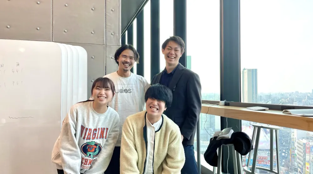 渋谷スクランブルスクエアの15階に位置するシェアオフィス「SHIBUYA QWS」で、ひとつの机を皆で囲みながら仕事をしています。